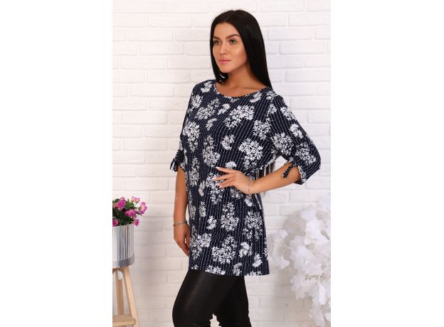 Женская туника полуприлегающего силуэта выполнена из вискозы с летним цветочным рисунком и тонкой изящной полоски, которая визуально делает Вас стройнее. На рукавах имеется затягивающаяся кулиса, горловина обработана окантовкой. Данная модель будет радовать своим комфортом каждый день.