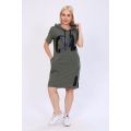 Женская туника из легкого трикотажного материала тонкого хлопка - кулирки. Свободная, спортивная, с капюшоном - её вполне можно использовать как летний вечерний костюм, как повседневный домашний наряд или как легкое праздничное или офисное платье. Благодаря свободному крою, туника отлично подойдет полным и пышным женщинам, беременным девушкам и кормящим мамам. Модный, нарядный черный принт в виде крупных и мелких латинских букв актуален всегда и придает изделию особый шик. Карманы спрятаны в боковых швах для вашего удобства.