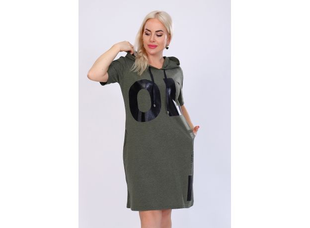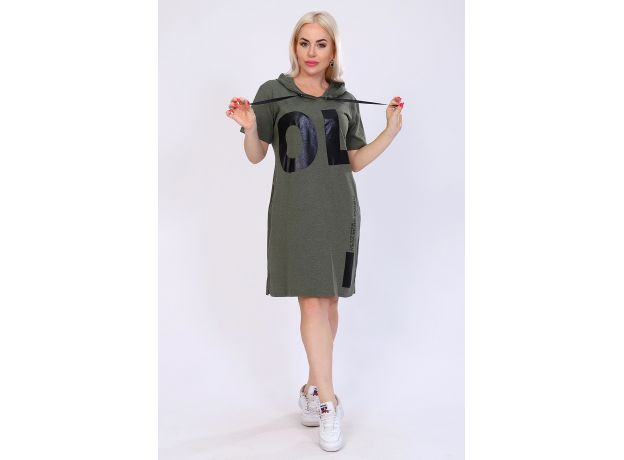 Женская туника из легкого трикотажного материала тонкого хлопка - кулирки. Свободная, спортивная, с капюшоном - её вполне можно использовать как летний вечерний костюм, как повседневный домашний наряд или как легкое праздничное или офисное платье. Благодаря свободному крою, туника отлично подойдет полным и пышным женщинам, беременным девушкам и кормящим мамам. Модный, нарядный черный принт в виде крупных и мелких латинских букв актуален всегда и придает изделию особый шик. Карманы спрятаны в боковых швах для вашего удобства.