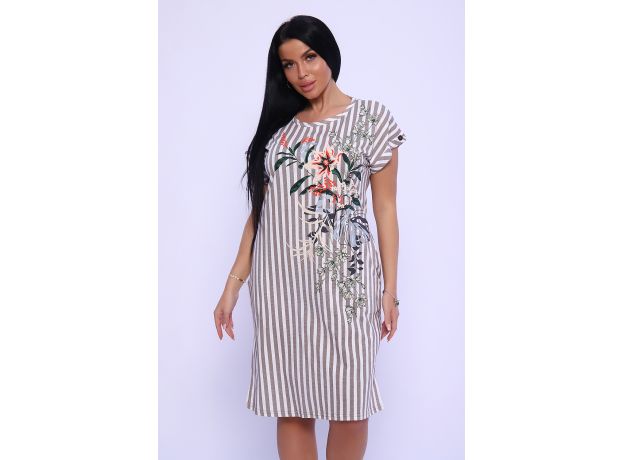 Легкая трикотажная туника из 100%-го хлопка на каждый день в очаровательную полоску. Легкий, свободный фасон подчеркнет вашу женственность и красоту, туника имеет удобный свободный крой, округлую горловину и чуть приспущенный короткий рукав. В боковых швах спрятаны два глубоких кармана, что добавляет ей дополнительный комфорт и практичность ведь так удобно всегда иметь под рукой телефон или другие мелочи. Идеальный свободный крой с расширением к низу прекрасно скрывает недостатки фигуры. Дизайн туники дополнен стильным принтом в виде гирлянды прекрасных цветов. Если вы хотите купить трикотажное изделие и ощущать в нем комфорт и свободу, то наша туника вам абсолютно подойдет!