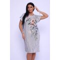 Легкая трикотажная туника из 100%-го хлопка на каждый день в очаровательную полоску. Легкий, свободный фасон подчеркнет вашу женственность и красоту, туника имеет удобный свободный крой, округлую горловину и чуть приспущенный короткий рукав. В боковых швах спрятаны два глубоких кармана, что добавляет ей дополнительный комфорт и практичность ведь так удобно всегда иметь под рукой телефон или другие мелочи. Идеальный свободный крой с расширением к низу прекрасно скрывает недостатки фигуры. Дизайн туники дополнен стильным принтом в виде гирлянды прекрасных цветов. Если вы хотите купить трикотажное изделие и ощущать в нем комфорт и свободу, то наша туника вам абсолютно подойдет!