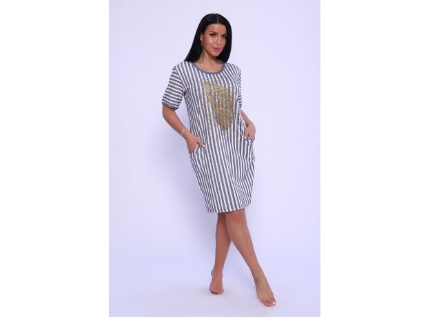Женская туника из хлопковой ткани (кулирка, хлопок 100%), свободного кроя, который подчеркнет вашу женственность и красоту. Материал не только комфортен в использовании, но и практичен, т.к. устойчив к износу. Для вашего удобства мы спрятали в боковых швах карманы, в которых незаметно для вас разместятся различные необходимые мелочи. Дизайн туники дополнен эффектным принтом, в виде ярко сияющего пера жар-птицы, расположенного на полочке. Модель несомненно станет украшением вашего гардероба. Туника имеет широкий размерный ряд, поэтому подойдет как миниатюрным девушкам, так и обладательницам более крупных размеров. Если вы хотите ощущать комфорт и свободу, то эта туника именно то, что вы ищете!