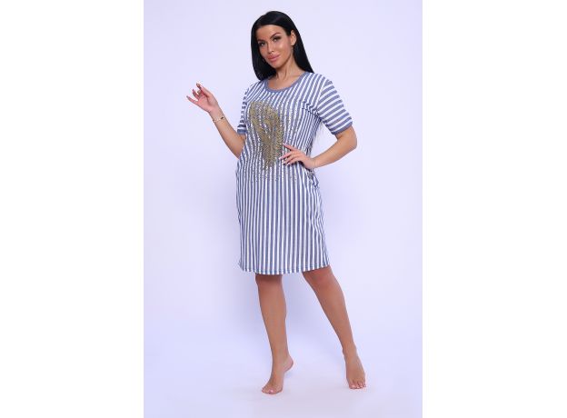 Женская туника из хлопковой ткани (кулирка, хлопок 100%), свободного кроя, который подчеркнет вашу женственность и красоту. Материал не только комфортен в использовании, но и практичен, т.к. устойчив к износу. Для вашего удобства мы спрятали в боковых швах карманы, в которых незаметно для вас разместятся различные необходимые мелочи. Дизайн туники дополнен эффектным принтом, в виде ярко сияющего пера жар-птицы, расположенного на полочке. Модель несомненно станет украшением вашего гардероба. Туника имеет широкий размерный ряд, поэтому подойдет как миниатюрным девушкам, так и обладательницам более крупных размеров. Если вы хотите ощущать комфорт и свободу, то эта туника именно то, что вы ищете!