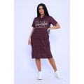 Женская туника из легкого трикотажного материала тонкого хлопка - кулирки. Свободная, спортивная, с капюшоном, объем которого регулируется атласной лентой контрастного цвета. Тунику вполне можно использовать как летний вечерний костюм, как повседневный домашний наряд или как легкое праздничное или офисное платье. Благодаря свободному крою, туника отлично подойдет полным и пышным женщинам, беременным девушкам и кормящим мамам. Нарядный принт в виде мерцающих крупных и мелких латинских букв актуален всегда и придает изделию особый шик. Карманы спрятаны в боковых швах для вашего удобства.