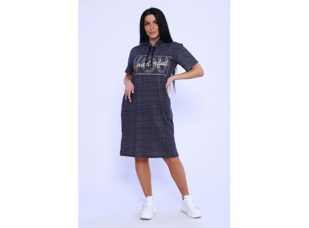 Женская туника из легкого трикотажного материала тонкого хлопка - кулирки. Свободная, спортивная, с капюшоном, объем которого регулируется атласной лентой контрастного цвета. Тунику вполне можно использовать как летний вечерний костюм, как повседневный домашний наряд или как легкое праздничное или офисное платье. Благодаря свободному крою, туника отлично подойдет полным и пышным женщинам, беременным девушкам и кормящим мамам. Нарядный принт в виде мерцающих крупных и мелких латинских букв актуален всегда и придает изделию особый шик. Карманы спрятаны в боковых швах для вашего удобства.