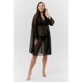 Туника женская пляжная, свободного силуэта с капюшоном и длинным рукавом. Декорирована хольнитенами.