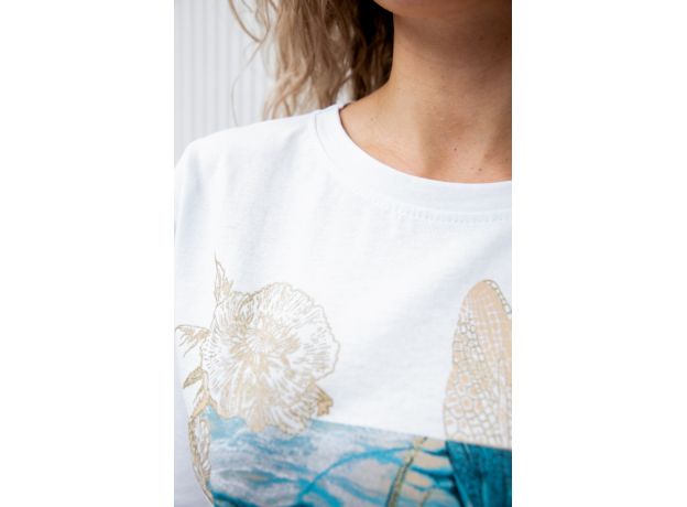 Туника женская полуприлегающего силуэта с длинными рукавами и ярким принтом.