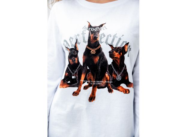 Туника женская полуприлегающего силуэта с длинными рукавами и ярким принтом.