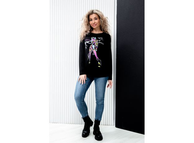 Туника женская полуприлегающего силуэта с длинными рукавами и ярким принтом.