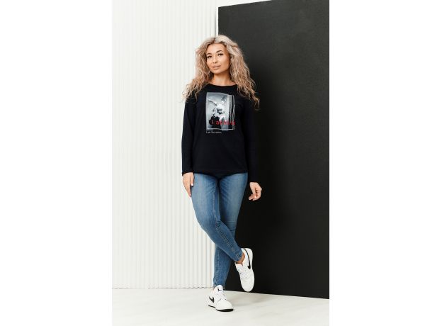 Туника женская полуприлегающего силуэта с длинными рукавами и ярким принтом.