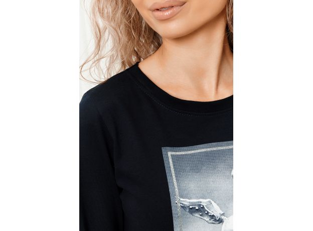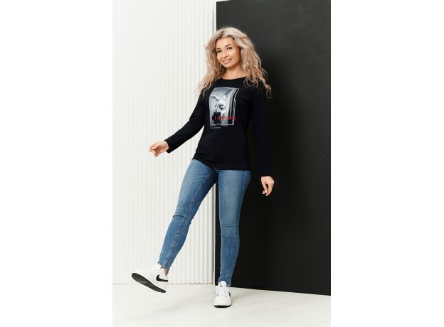 Туника женская полуприлегающего силуэта с длинными рукавами и ярким принтом.