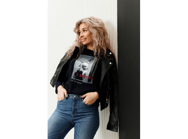 Туника женская полуприлегающего силуэта с длинными рукавами и ярким принтом.