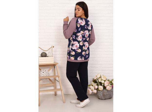 Туника женская, полочка и спинка из набивного футера двухнитки. Рукав реглан однотонный из интерлока качества пенье. Для дома и отдыха.