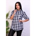 Туника клетка выполнена из ткани кулирки хлопок 100%. На полочке планка с пуговицами, карман, воротник рубашечный со стойкой, рукава на манжете с патой. Внизу легкое закругление, по бокам разрезы, на спинке кокетка. Туника подойдет для отдыха, дома и прогулок.