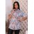 Туника женская на пуговицах выполнена из ткани кулирка оригинальной расцветки в виде нежных цветов. Воротник рубашечный, правая сторона планка из отделочной ткани. Рукав короткий. Низ с небольшим закруглением. Туника подойдет для прогулок и отдыха.