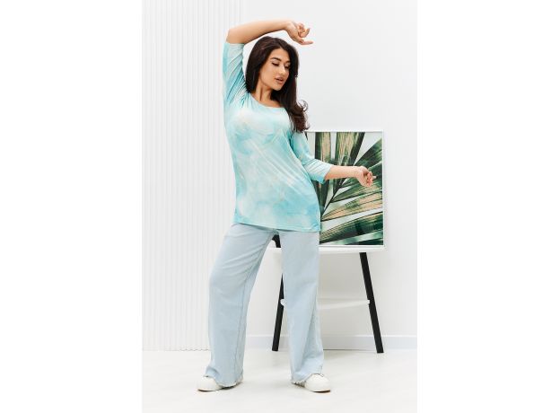 Туника из вискозы оригинальной расцветки с рукавом 3/4. Горловина и рукава подшиты. Туника прекрасно подойдет как для дома, так и для прогулок и отдыха.