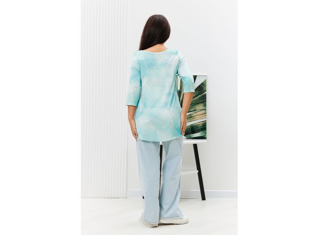 Туника из вискозы оригинальной расцветки с рукавом 3/4. Горловина и рукава подшиты. Туника прекрасно подойдет как для дома, так и для прогулок и отдыха.