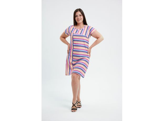 Летняя туника в ярких цветах, комбинированная из асимметричных частей в полоску.