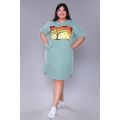 Туника удлиненная из хлопкового трикотажного полотна. Лаконичный прямой дизайн кроя с фигурным исполнением низа подола подчеркнут контрастным принтом на полочке. Печать на изделии выполнена глиттером, что придает сверкающий эффект. Блестки не осыпаются, а принт практически не чувствуется на ткани, что позволяет телу дышать. Изделие выполнено из 100% хлопка