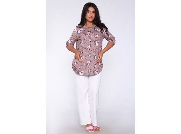 Туника женская Туника-рубашка имеет округлый вырез с фигурной капелькой. Рукава 3/4 и низ подогнуты на плоскошовной машине, а так жен имеют декоративный элемент с пуговицей.Блуза женская подходит для беременных, для полных, для женщин больших размеров. Туника-рубашка подойдет для лета, весны, осени, зимы