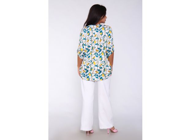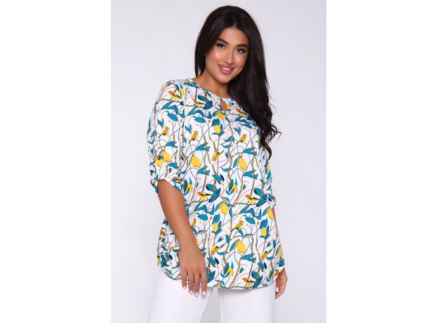 Туника женская Туника-рубашка имеет округлый вырез с фигурной капелькой. Рукава 3/4 и низ подогнуты на плоскошовной машине, а так жен имеют декоративный элемент с пуговицей.Блуза женская подходит для беременных, для полных, для женщин больших размеров. Туника-рубашка подойдет для лета, весны, осени, зимы