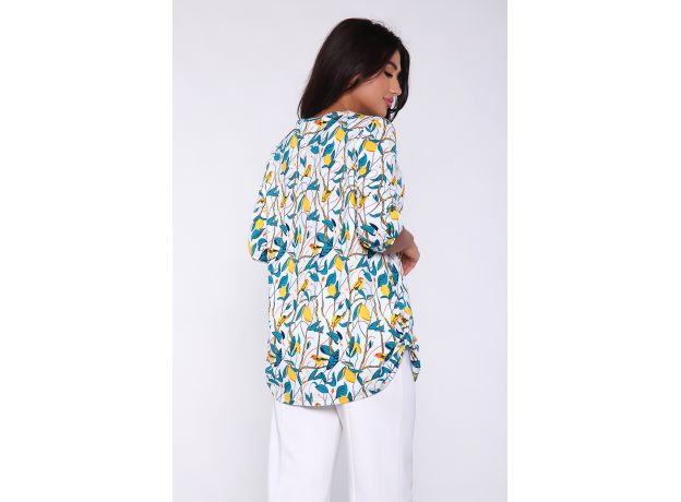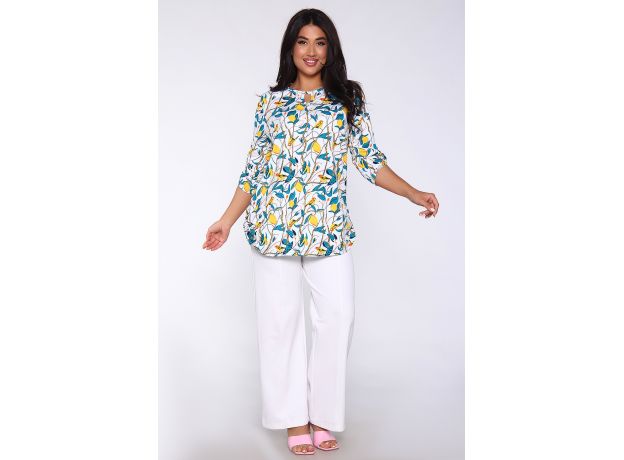Туника женская Туника-рубашка имеет округлый вырез с фигурной капелькой. Рукава 3/4 и низ подогнуты на плоскошовной машине, а так жен имеют декоративный элемент с пуговицей.Блуза женская подходит для беременных, для полных, для женщин больших размеров. Туника-рубашка подойдет для лета, весны, осени, зимы