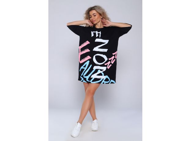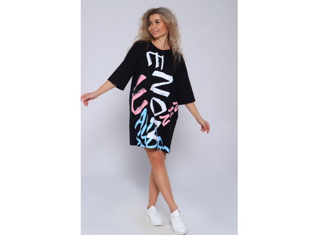 Туника женская Oversize с интересным принтом для дома и сна, свободная , прямая , классическая из хлопка, незаменимая и удобная повседневная одежда .Ткань кулирка пенье, плотность 160 г.