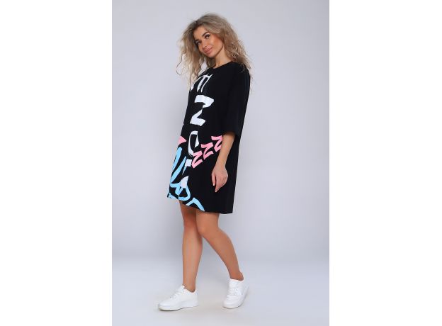 Туника женская  Oversize с интересным принтом для дома и сна, свободная , прямая , классическая из хлопка, незаменимая и удобная повседневная одежда .Ткань кулирка пенье, плотность 160 г.