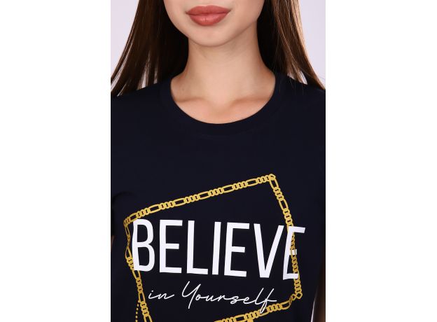 Женское платье-туника длиной чуть выше колена с коротким втачным рукавом, боковыми карманами в шве и небольшими разрезами по бокам внизу. Спереди на полочке расположен принт в виде цепочек с надписью Believe in Yourself (Верь в себя). Округлая горловина обработана обтачкой из основного материала с декоративной отсрочкой по линии втачиваемого воротника. Низ рукавов и низ туники обработан подгибкой. Выполнена из однотонного высококачественного трикотажного полотна - кулирки с лайкрой пенье. Стойкие цвета ткани, яркий принт. Для дома, для дачи, на прогулку, для отдыха, в отпуск, на море. Отличный подарок девушкам к любому поводу!