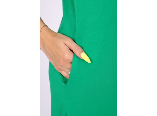 Женское платье-туника длиной чуть выше колена с коротким втачным рукавом, боковыми карманами в шве и небольшими разрезами по бокам внизу.