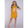 Женское платье-туника длиной чуть выше колена с милым принтом на полочке в виде животного-символа Нового 2023 года - зайчика, с короткими рукавами - реглан контрастного цвета и округлой горловиной. Низ платья закруглен и образует небольшие разрезы по бокам. Горловина и вход в карманы обработаны окантовкой из ткани рукавов. Наличие боковых карманов добавит дополнительный комфорт при использовании. Выполнена из трикотажного полотна, 100% хлопок. Удобная, модная приятная к телу. Не стесняет движения. Яркие стойкие цвета соответствуют модным тенденциям. Можно носить, как домашнюю тунику или уличное платье. Для дома и отдыха, для дачи. Новогодняя тематика принтов делает эту модель отличным подарком девушкам на Новый год!