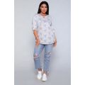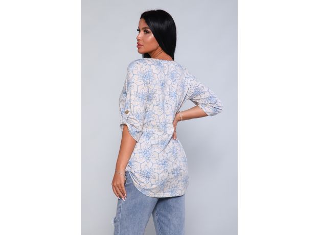 Женская блуза - туника с рукавом 3/4 с фигурным вырезом с окантовкой из основной ткани. Длина рукава регулируется патой на пуговице.