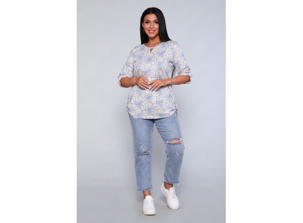 Женская блуза - туника с рукавом 3/4 с фигурным вырезом с окантовкой из основной ткани. Длина рукава регулируется патой на пуговице. Такая же регулировка находится по бокам изделия. Можно носить как с опущенной патой, так и собранной на декоративную пуговицу. Низ изделия закруглен, перед немного укорочен. Блузка отлично подойдет как для уличного, так и домашнего ношения. Прекрасно сочетается с джинсами на прогулку, с юбками - миди в офис, с домашними брюками для дома и дачи. Большой ассортимент приятных расцветок на любой вкус. Туника прекрасно смотрится на беременных, так как выполнена в свободном стиле. Отличный подарок любимым женщинам!