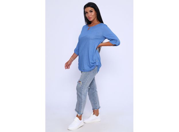 Женская блуза - туника с рукавом 3/4 с фигурным вырезом с окантовкой из основной ткани. Длина рукава регулируется патой на пуговице. Такая же регулировка находится по бокам изделия. Можно носить как с опущенной патой, так и собранной на декоративную пуговицу. Низ изделия закруглен, перед немного укорочен. Блузка отлично подойдет как для уличного, так и домашнего ношения. Прекрасно сочетается с джинсами на прогулку, с юбками - миди в офис, с домашними брюками для дома и дачи. Большой ассортимент приятных расцветок на любой вкус. Туника прекрасно смотрится на беременных, так как выполнена в свободном стиле. Отличный подарок любимым женщинам!