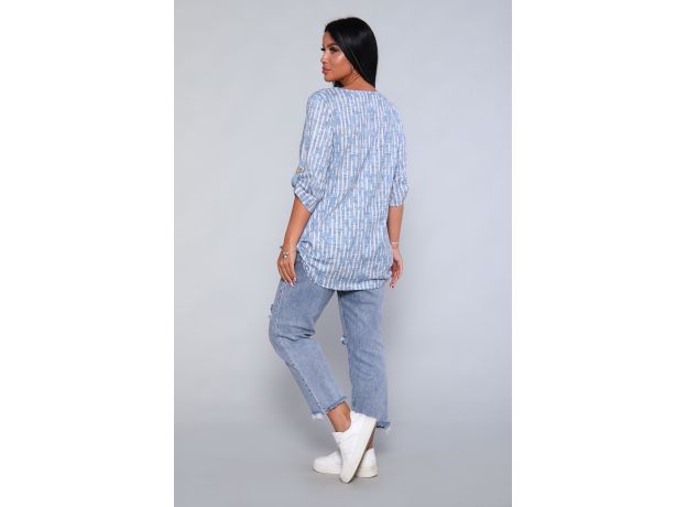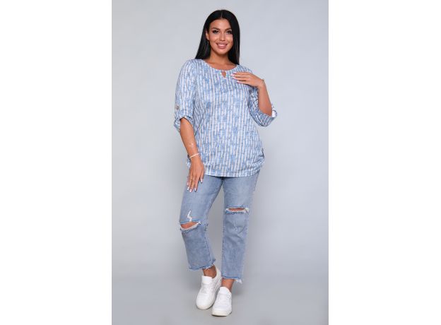 Женская блуза - туника с рукавом 3/4 с фигурным вырезом с окантовкой из основной ткани. Длина рукава регулируется патой на пуговице. Такая же регулировка находится по бокам изделия. Можно носить как с опущенной патой, так и собранной на декоративную пуговицу. Низ изделия закруглен, перед немного укорочен. Блузка отлично подойдет как для уличного, так и домашнего ношения. Прекрасно сочетается с джинсами на прогулку, с юбками - миди в офис, с домашними брюками для дома и дачи. Большой ассортимент приятных расцветок на любой вкус. Туника прекрасно смотрится на беременных, так как выполнена в свободном стиле. Отличный подарок любимым женщинам!