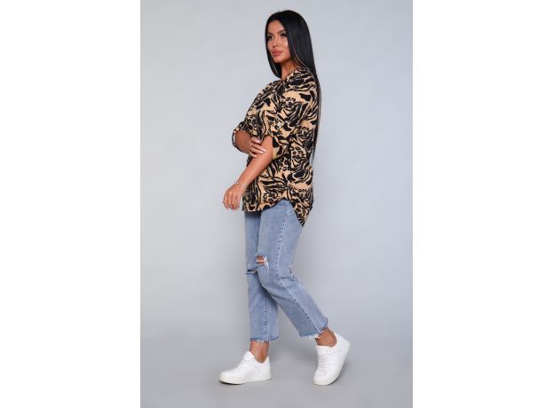 Женская блуза - туника с рукавом 3/4 с фигурным вырезом с окантовкой из основной ткани. Длина рукава регулируется патой на пуговице. Такая же регулировка находится по бокам изделия. Можно носить как с опущенной патой, так и собранной на декоративную пуговицу. Низ изделия закруглен, перед немного укорочен. Блузка отлично подойдет как для уличного, так и домашнего ношения. Прекрасно сочетается с джинсами на прогулку, с юбками - миди в офис, с домашними брюками для дома и дачи. Большой ассортимент приятных расцветок на любой вкус. Туника прекрасно смотрится на беременных, так как выполнена в свободном стиле. Отличный подарок любимым женщинам!