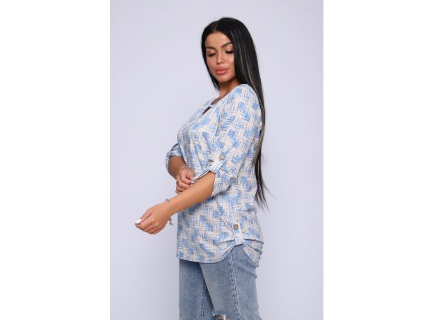 Женская блуза - туника с рукавом 3/4 с фигурным вырезом с окантовкой из основной ткани. Длина рукава регулируется патой на пуговице. Такая же регулировка находится по бокам изделия. Можно носить как с опущенной патой, так и собранной на декоративную пуговицу. Низ изделия закруглен, перед немного укорочен. Блузка отлично подойдет как для уличного, так и домашнего ношения. Прекрасно сочетается с джинсами на прогулку, с юбками - миди в офис, с домашними брюками для дома и дачи. Большой ассортимент приятных расцветок на любой вкус. Туника прекрасно смотрится на беременных, так как выполнена в свободном стиле. Отличный подарок любимым женщинам!