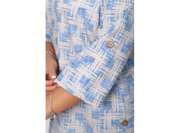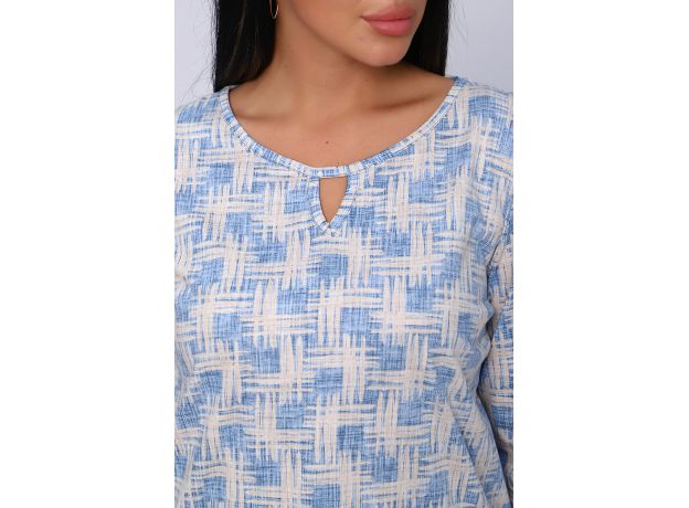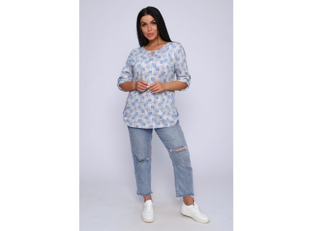 Женская блуза - туника с рукавом 3/4 с фигурным вырезом с окантовкой из основной ткани. Длина рукава регулируется патой на пуговице.