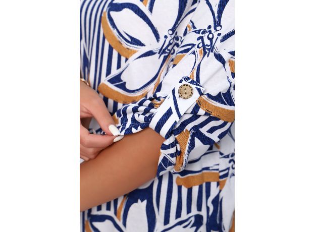 Женская блуза - туника с рукавом 3/4 с фигурным вырезом с окантовкой из основной ткани. Длина рукава регулируется патой на пуговице. Такая же регулировка находится по бокам изделия. Можно носить как с опущенной патой, так и собранной на декоративную пуговицу. Низ изделия закруглен, перед немного укорочен. Блузка отлично подойдет как для уличного, так и домашнего ношения. Прекрасно сочетается с джинсами на прогулку, с юбками - миди в офис, с домашними брюками для дома и дачи. Большой ассортимент приятных расцветок на любой вкус. Туника прекрасно смотрится на беременных, так как выполнена в свободном стиле. Отличный подарок любимым женщинам!