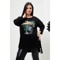 Туника женская. На полочке принт. По низу изделия отделка тесьма.
