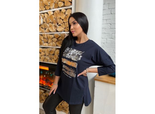 Туника женская. На полочке принт. По низу изделия разрезы в боковых швах.