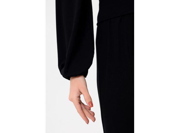 Элегантная женская блузка с длинными рукавами выглядит роскошно, ее можно носить как нарядную, праздничную, офисную. Выполнена из приятной на ощупь дышащей ткани, не просвечивает. Особенностью блузки являются объёмные рукава с резинкой по низу. Благодаря удачному крою, эта модель подходит для высоких и невысоких женщин.