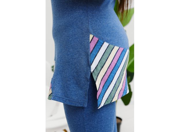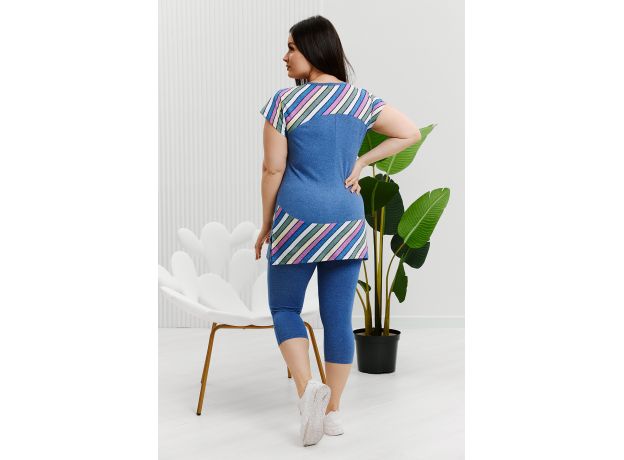 Туника прилегающего силуэта, ассиметричного кроя. Рукава цельнокроеные короткие. В боковых швах по низу разрезы.