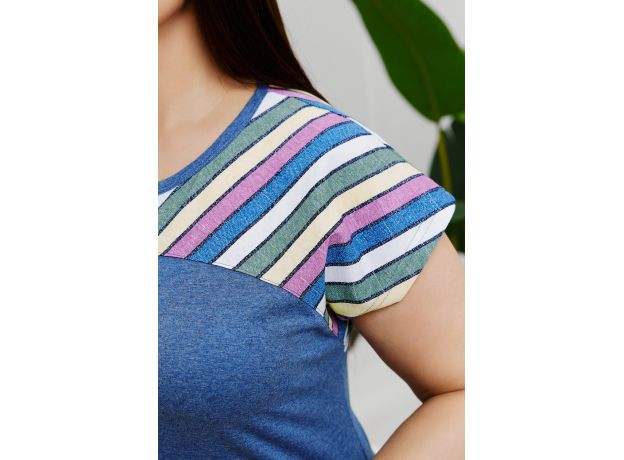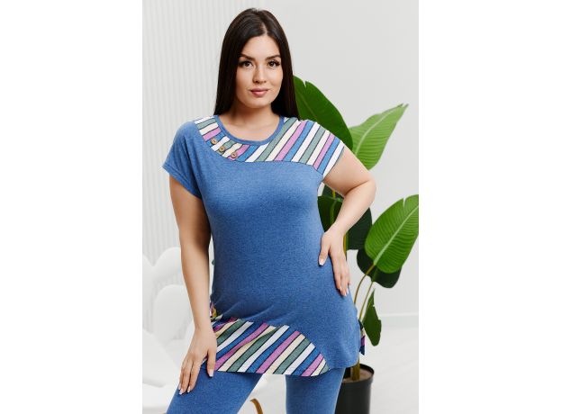 Туника прилегающего силуэта, ассиметричного кроя. Рукава цельнокроеные короткие. В боковых швах по низу  разрезы.