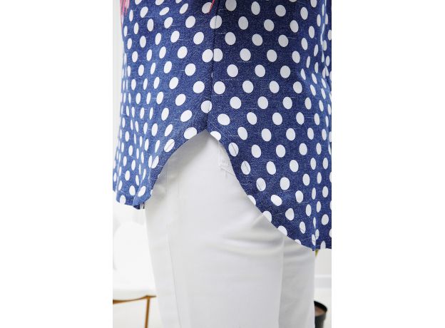 Туника женская свободного силуэта. На полочке застроченные  вертикальные складки, декорированные пуговицами. Рукав 3/4; с завязками.