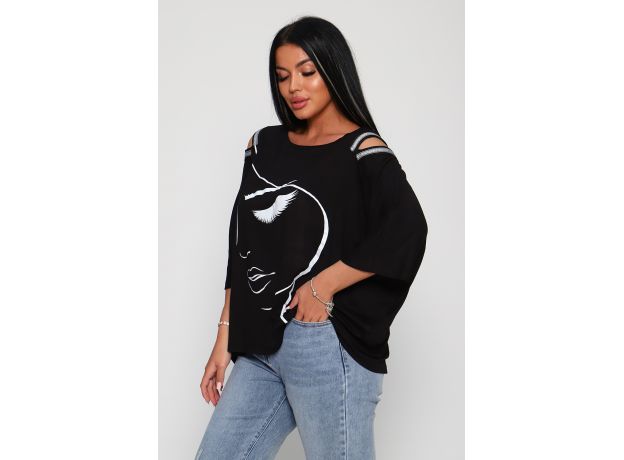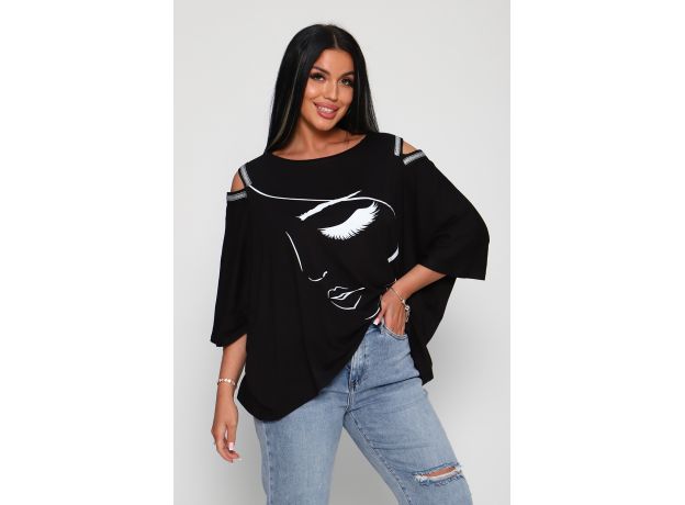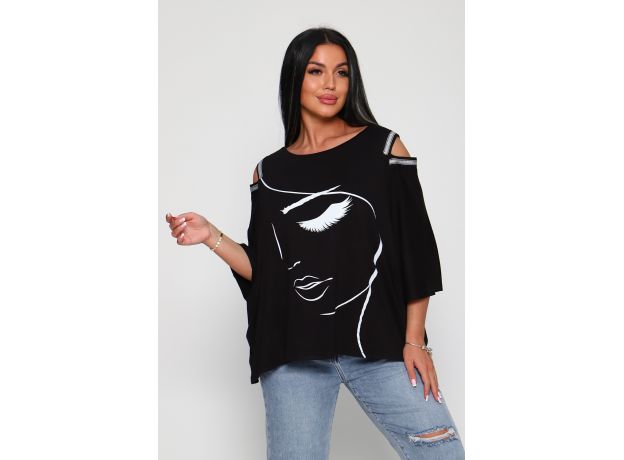 Туника молодежная из вискозы, перед на 2 см короче спинки, широкая свободная не длинная, рукав спущенный по плечу обработан декоративной тесьмой, по переду принт. Размеры спаренные на модели 48-50.