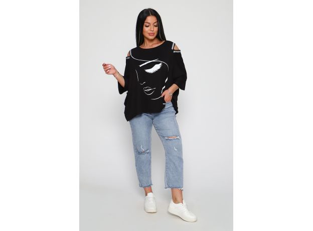 Туника молодежная из вискозы, перед на 2 см короче спинки, широкая свободная не длинная, рукав спущенный по плечу обработан декоративной тесьмой, по переду принт. Размеры спаренные на модели 48-50.