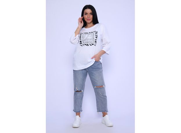 Туника из натурального хлопка прекрасный вариант для повседневного образа. Оригинальный принт с использованием глиттера и техники объёмной печати украшает модель, придавая ей изысканный вид. Обработка деталей вкруговую с закрепкой, рукав длиной 3/4, горловина втачная из основной ткани. Большие размеры!