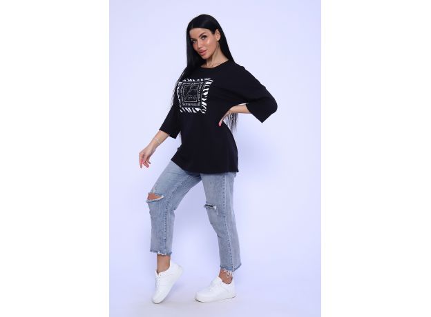 Туника из натурального хлопка прекрасный вариант для повседневного образа. Оригинальный принт с использованием глиттера и техники объёмной печати украшает модель, придавая ей изысканный вид. Обработка деталей вкруговую с закрепкой, рукав длиной 3/4, горловина втачная из основной ткани. Большие размеры!