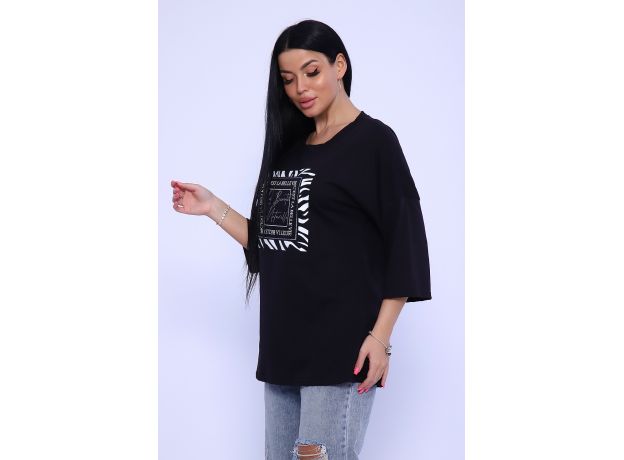 Туника из натурального хлопка прекрасный вариант для повседневного образа. Оригинальный принт с использованием глиттера и техники объёмной печати украшает модель, придавая ей изысканный вид. Обработка деталей вкруговую с закрепкой, рукав длиной 3/4, горловина втачная из основной ткани. Большие размеры!